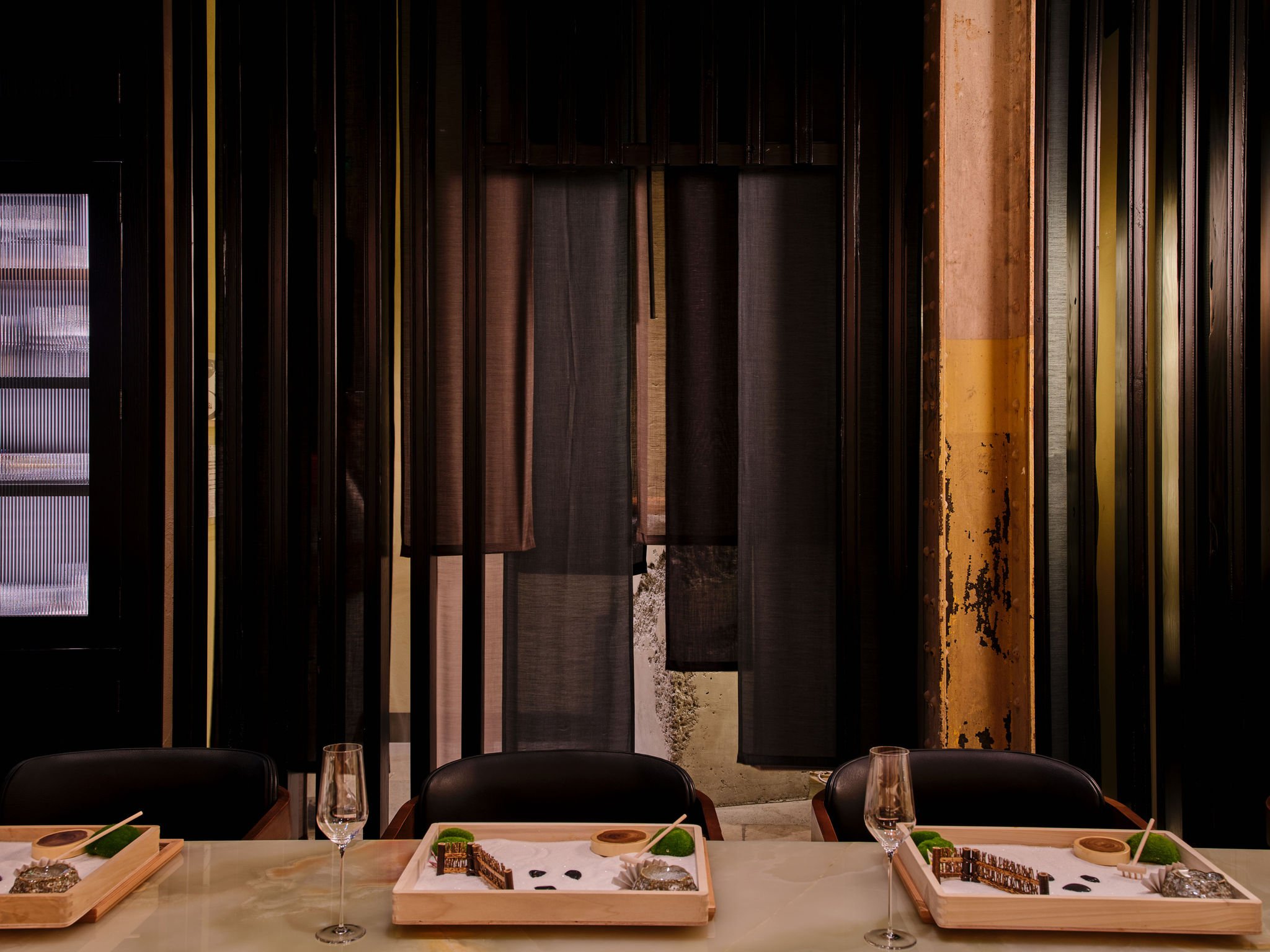Ryokou is a small, intimate 12-person Omakase bar experience led by chef Leonard Yu of Omakase Table in Atlanta. It is a small restaurant space within the historic Abrams Fixtures building, which has been restored by Braden Fellman Group. The building includes a mix of residential, office, and restaurant space. The restaurant’s aesthetic leans into the idea of wabi sabi, or impermanence, and celebrates the historic design elements of the space, such as exposed wood beams and historic brick walls. A large part of the scope was designing and detailing custom millwork pieces in the space to maximize storage while maintaining an elegance of form within the space.